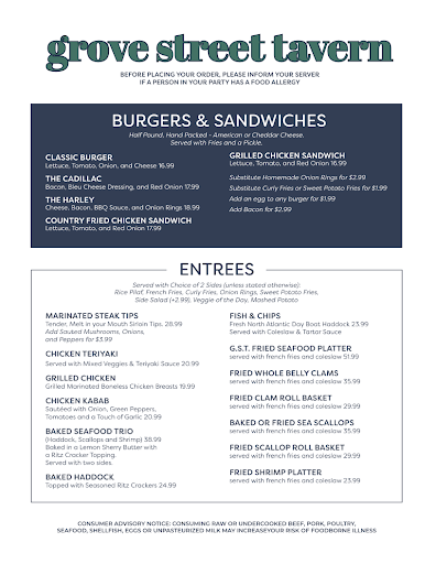 Overall, Grove Street Tavern’s menu is packed with mouthwatering options that blend comfort with creativity, ensuring there’s something for everyone to enjoy.